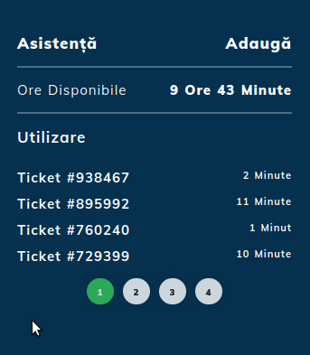 - Все още на страницата, на която сме, има прозорец, който брои използваните часове за поддръжка за различни операции. В интерфейса ще видите, че за всяка индивидуална заявка ще има отворен билет за поддръжка в акаунта, който ще съдържа информация, свързана с фактурираната процедура, както и оставащите часове за поддръжка.