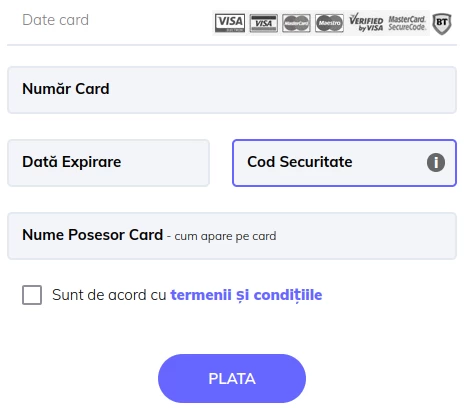 - След свързването на името на картата, системата автоматично ще пренасочи страницата към платежния процесор, където ще трябва да попълните данните на картата, която искате да запазите. Потвърждавате процедурата, като кликнете върху бутона ПЛАТИ.