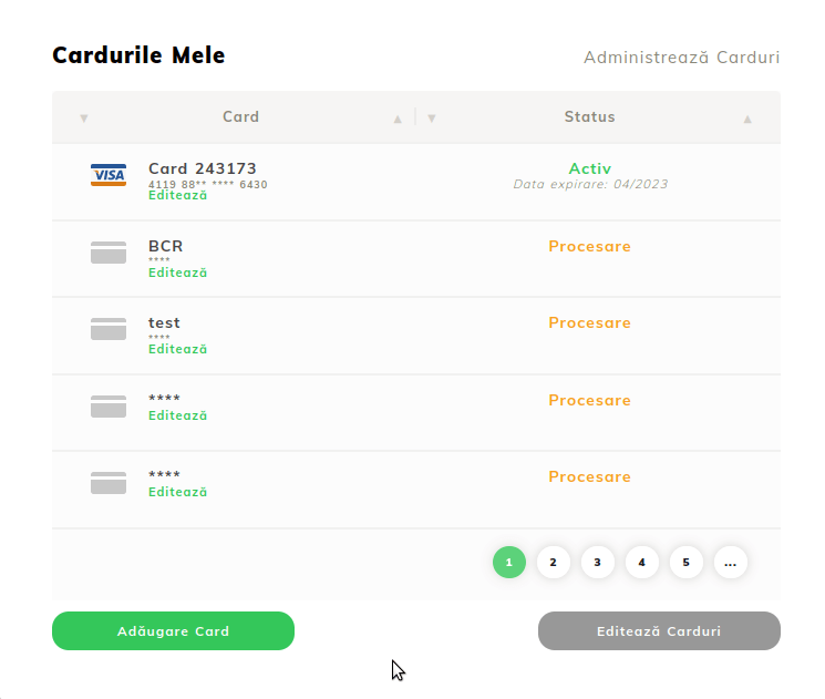 - След добавяне на карта, ще анализираме интерфейса за управление на карти в акаунта.