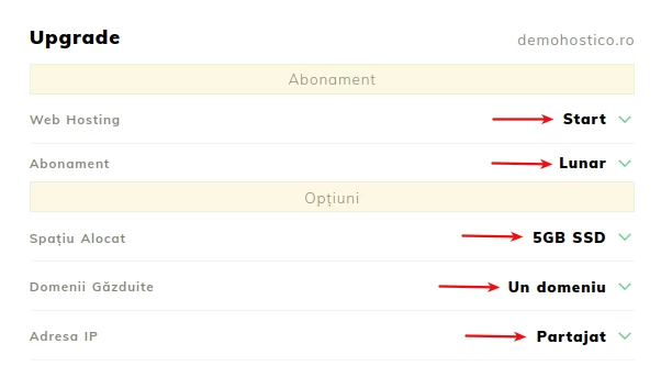 - За запитвания за понижаване е препоръчително да се свържете с онлайн поддръжката или да изпратите уведомление на office@hostico.com, тъй като трябва да се анализират редица фактори преди да се направи преминаването.
